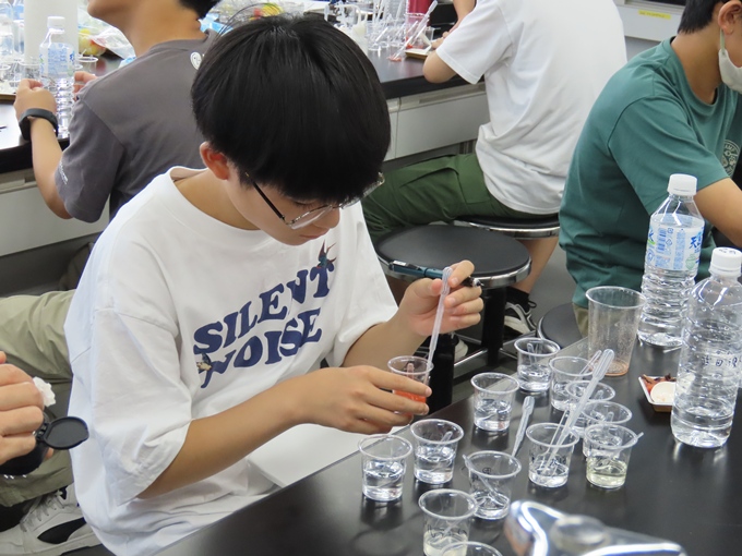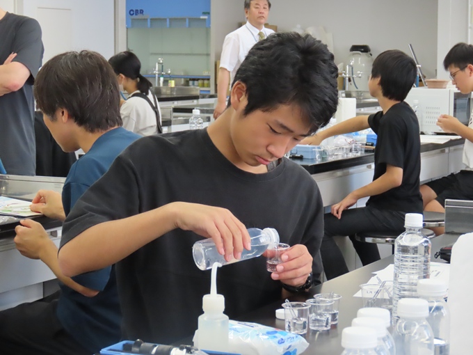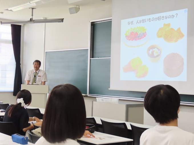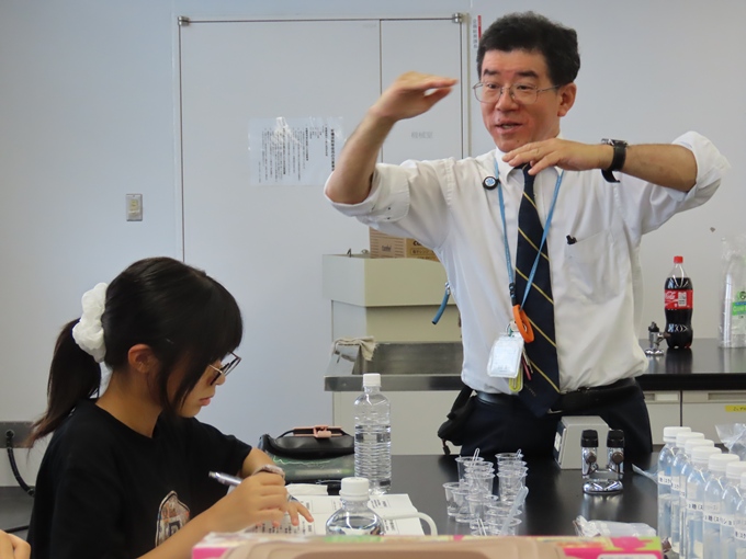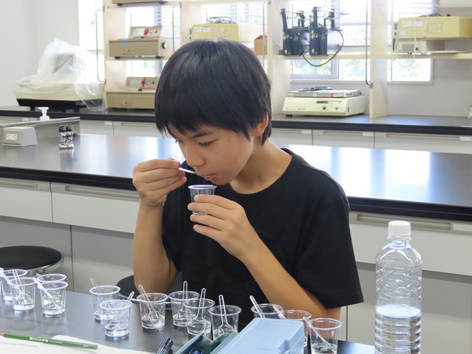 私たちの食生活で身近な「甘み」は、原料や製造方法の違いによって、ショ糖、ブドウ糖、果糖など、様々な種類の「糖」に形を変えます。県内唯一の薬学部を持つ新潟薬科大学を会場に、「甘み」を調べる官能試験や屈折率糖度計(Brix糖度計)を用いた糖度測定を通して、甘味度や糖度の変化を科学的に学ぶ機会を得ました。