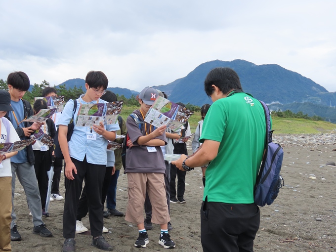 須沢海岸に到着、講座開始、講師自己紹介